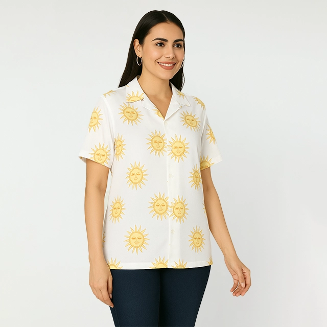 With a regular fit, short sleeves, and a straight hem, these shirts bring the perfect balance of relaxed and polished. Whether it’s floral print shirts for women or bold tiger print shirts for women, our high-quality digital fabric printing ensures vibrant, long-lasting designs that stand out.